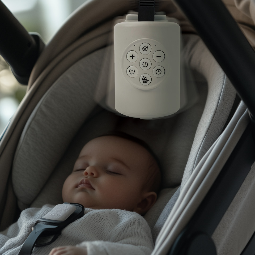 Automated rhythmic vibrations gently rock the stroller, calming baby with soothing, natural -motion