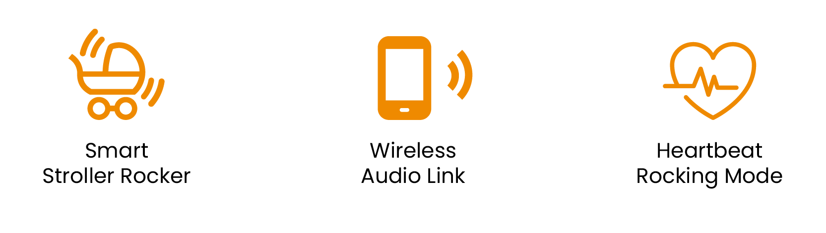 - Choose between“Heartbeat & Wave Rocking Modes” to mimic natural rhythms